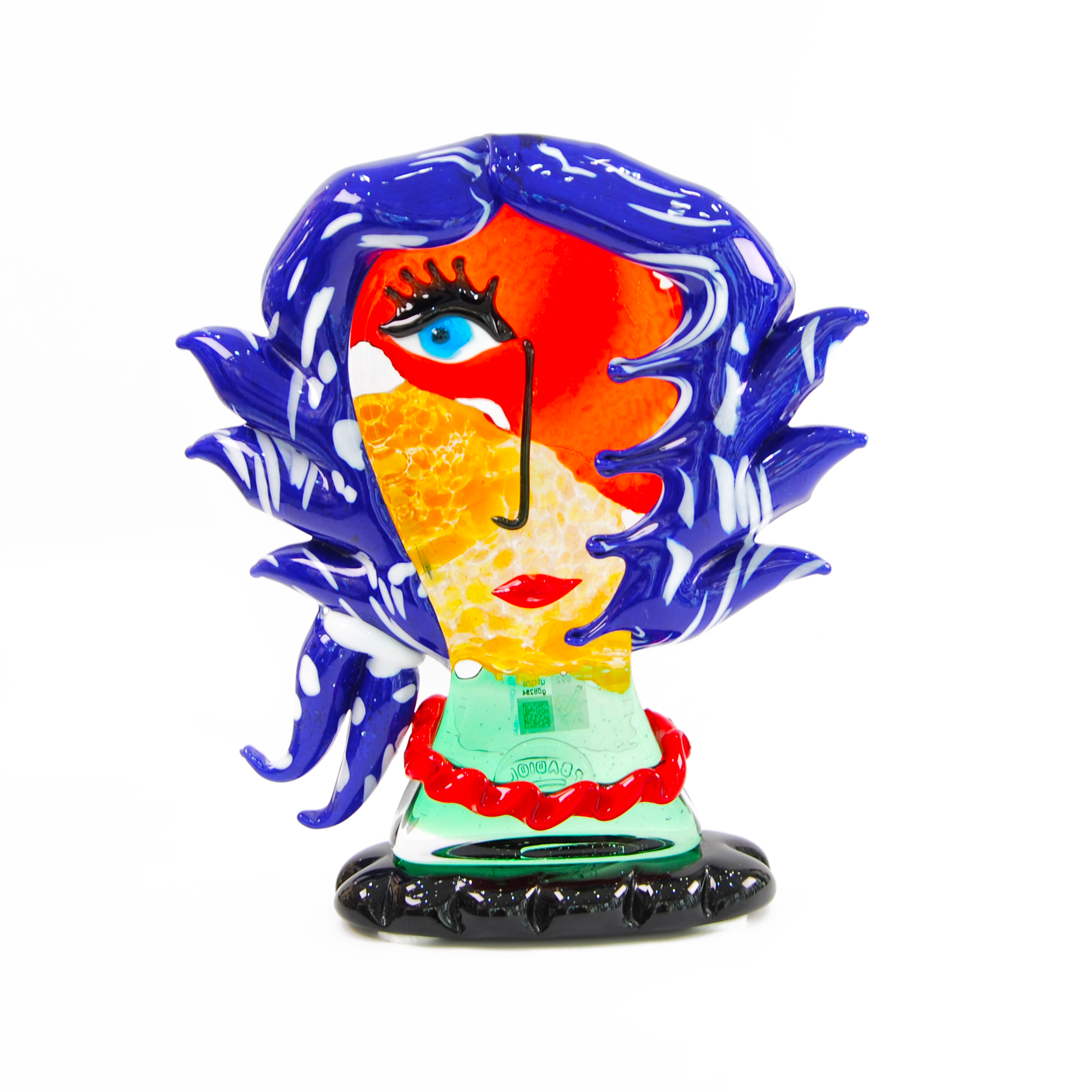 Hand-blown by Murano master glassmakers, “Blu Haired Face” is a unique piece that fuses pop Cubism with exceptional craftsmanship—perfect for collectors and lovers of bold, ironic works of art.