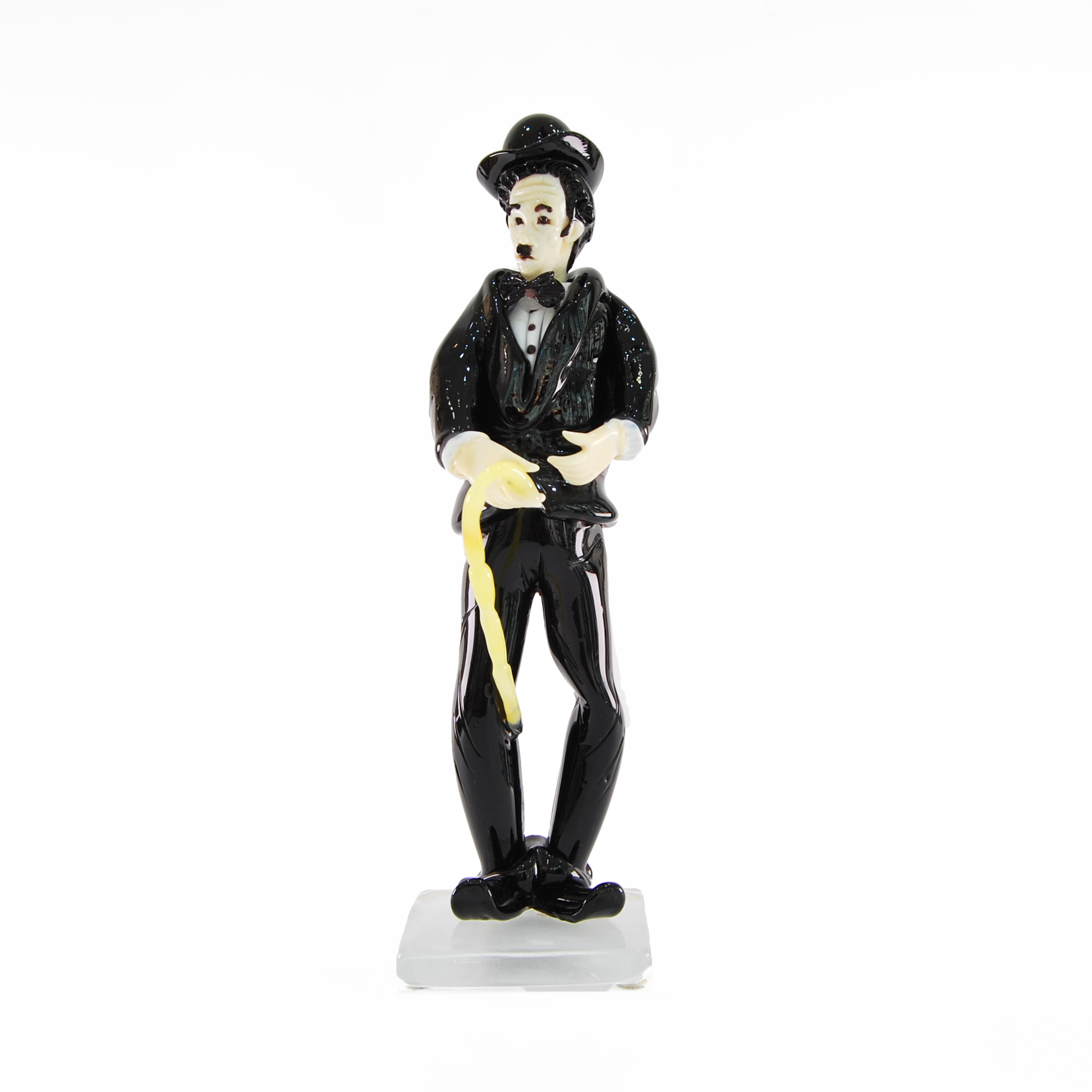 Murano Glass Sculpture “Charlie Chaplin in Black Suit with Cane” – Chaplin Collection