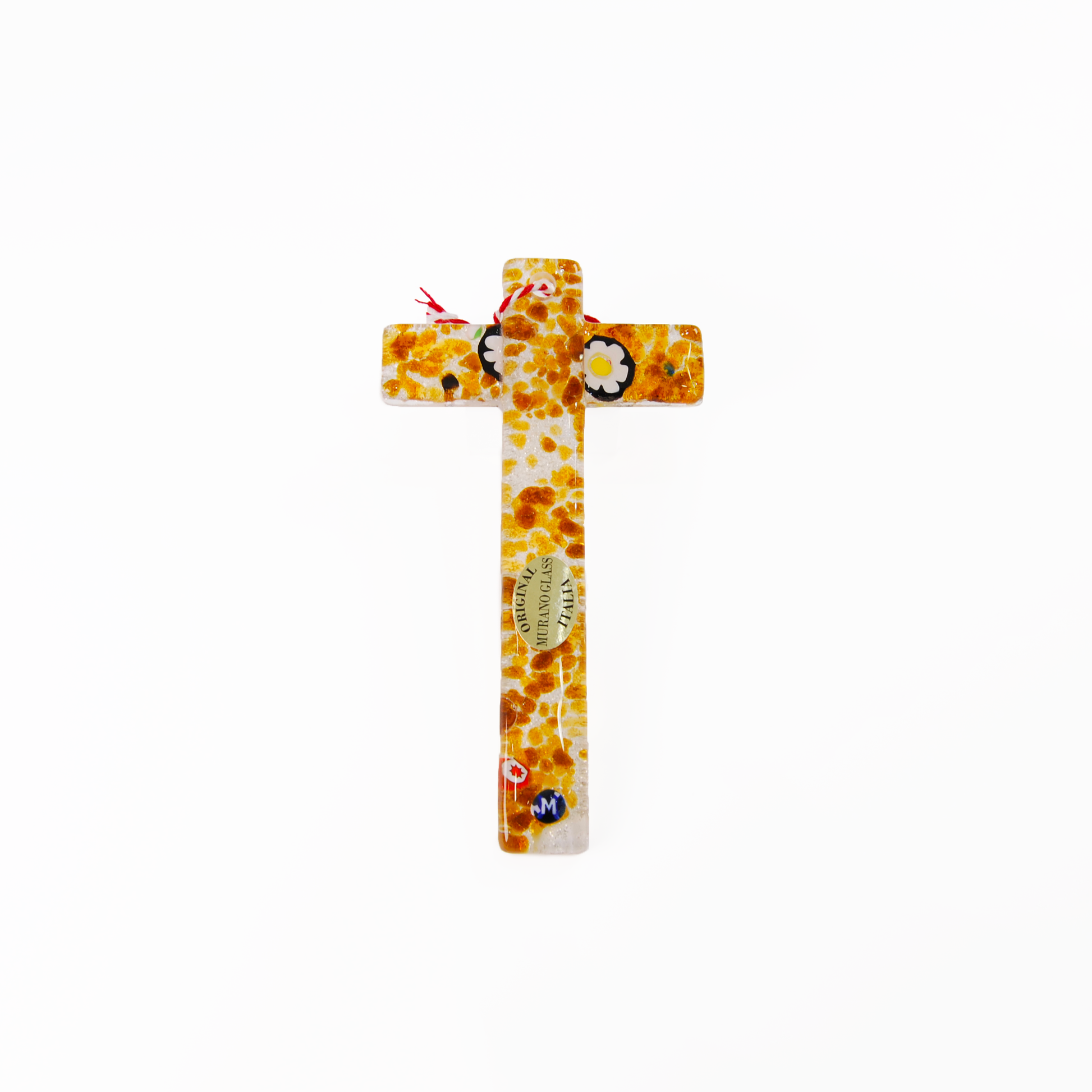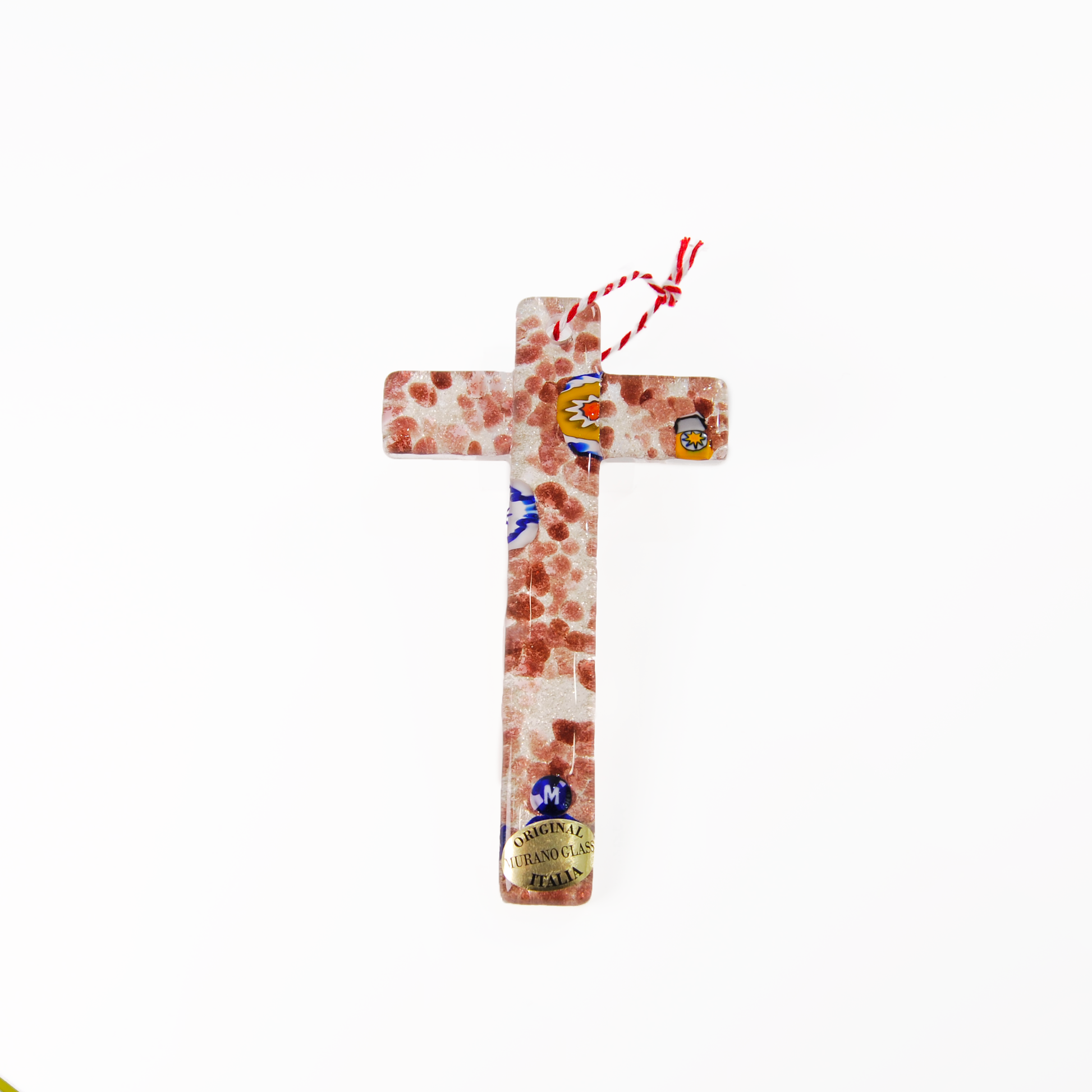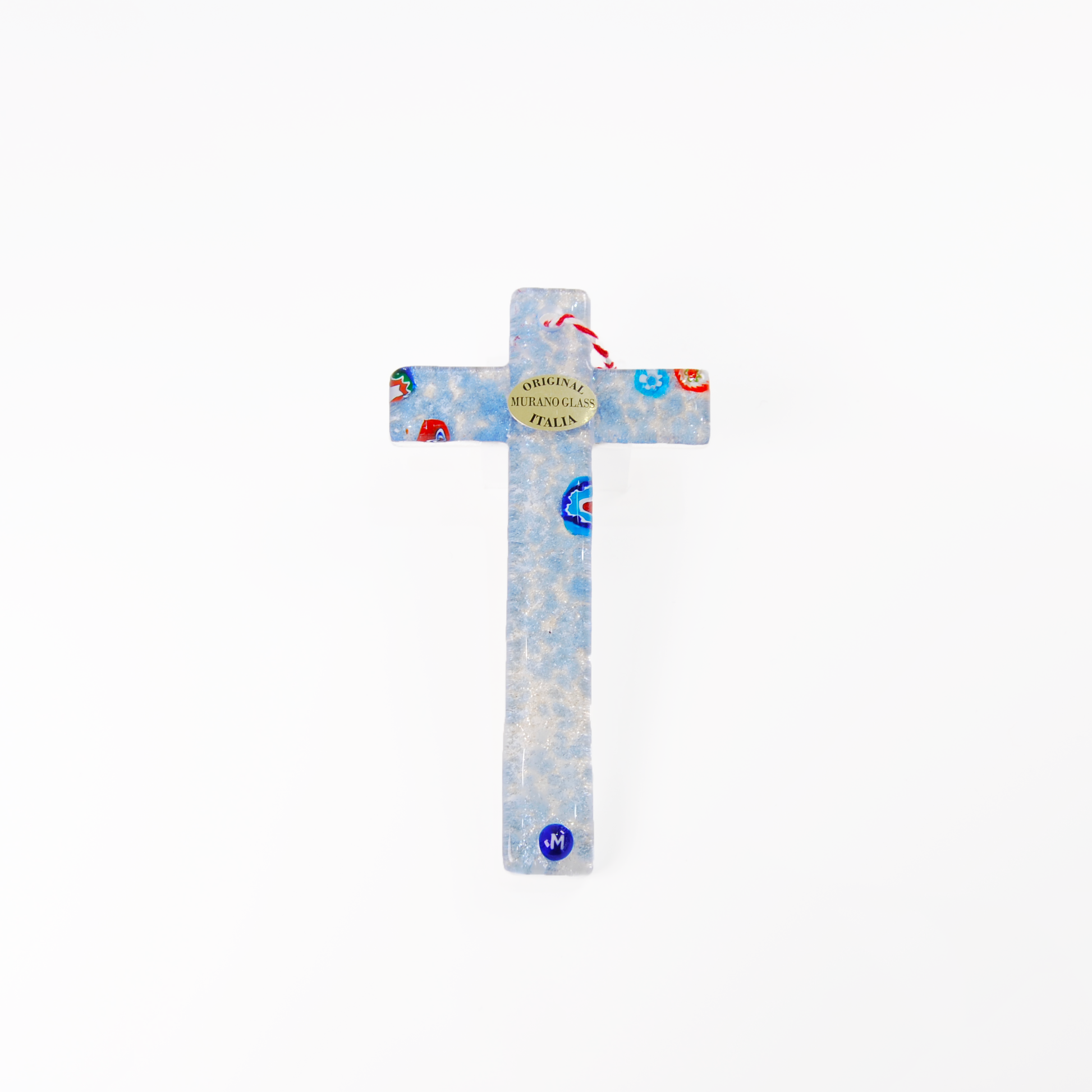 Murano Glass Decoration “Medium Artistic Cross Silver Base”