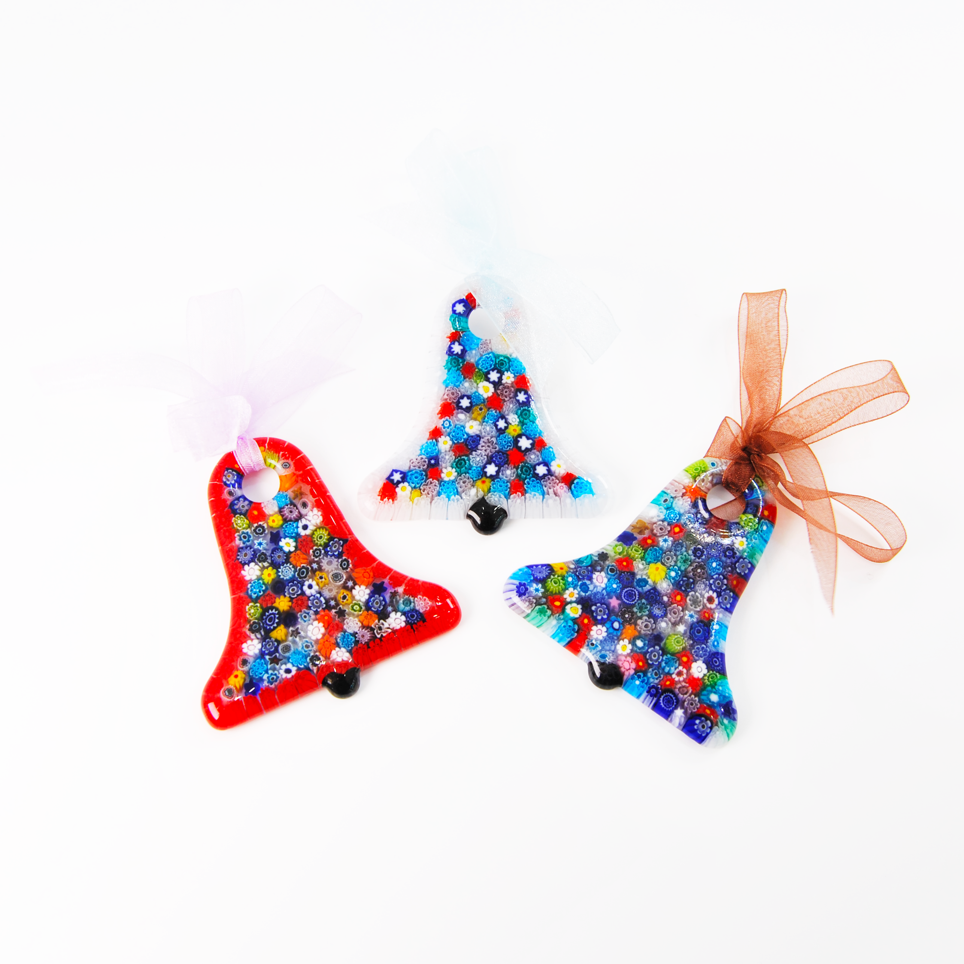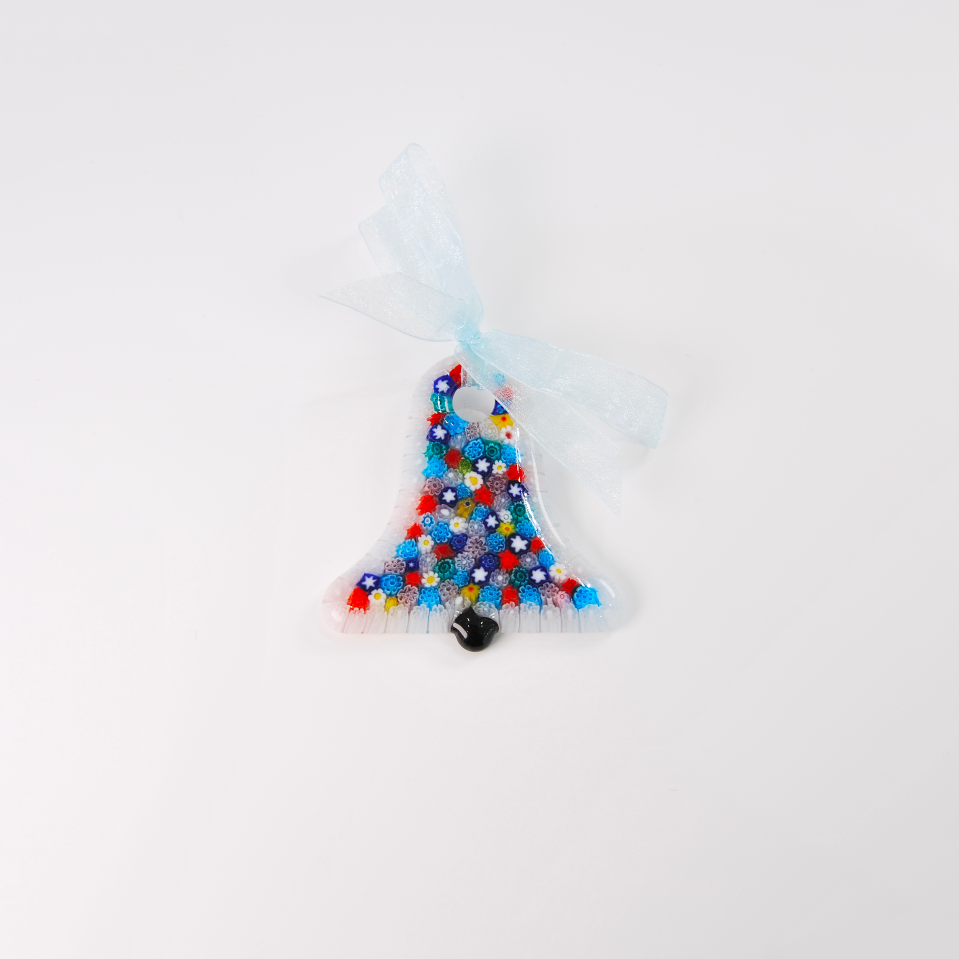 Lively, festive, and entirely handmade, the “Murrina Bell” is a Christmas ornament crafted from authentic Murano glass, enriched with a vibrant mix of embedded murrine. Each bell is unique, featuring playful variations in color and detail.
