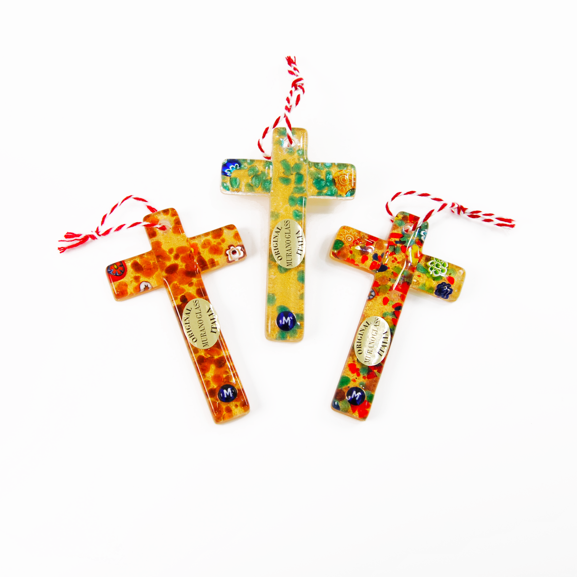A symbolic and luminous creation, the “Small Artistic Cross Golden Base” is a handcrafted Murano glass decoration available in a variety of vibrant and original color combinations.